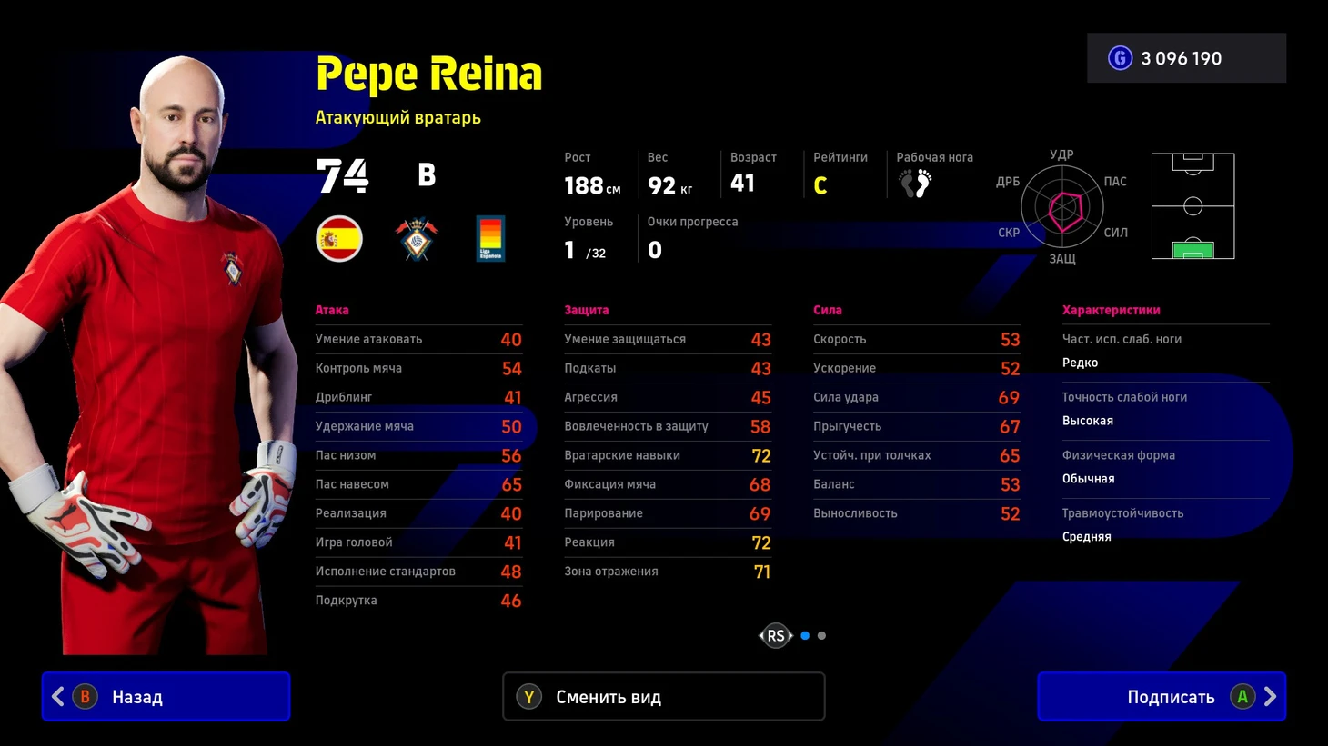 На вратарях лучше не экономить, но, если монет немного и хотите знакомое лицо, смело берите Пепе Рейну. Испанец когда-то зажигал в «Ливерпуле», да и сейчас выступает на высоком уровне с солидными характеристиками. Приятные бонусы – капитанские способности и дальние броски мяча.