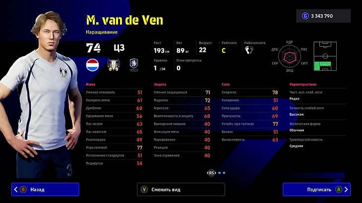 Нет денег, но осталась дыра в центре защиты? Спасет новинок «Тоттенхэма» Микки ван де Вен! Нидерландский центрдеф получил высокие показатели скорости, игры головой и физики, которые можно поднять еще выше. В крайнем случае ван де Вен подменит левого защитника.