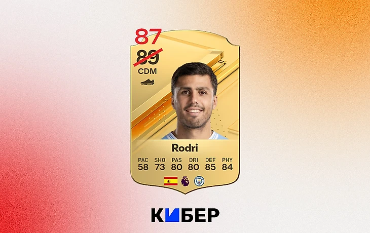 На карточку Родри в FC 24 больно смотреть. Лучший опорник мира в 27 лет окончательно разучился бегать, а его сильнейший показатель – скромная защита 85. Настоящий рейтинг Родри на родной позиции – всего 87 пунктов, в центре поля он бы получил смешные 85 баллов, а на других позициях в испанце трудно признать футболиста.