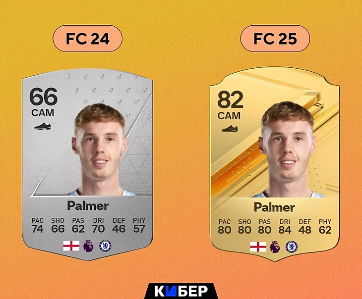 В FC 25 Палмер вряд ли сразу получит звездный рейтинг, но точно перешагнет за отметку в 80. Заслужил!