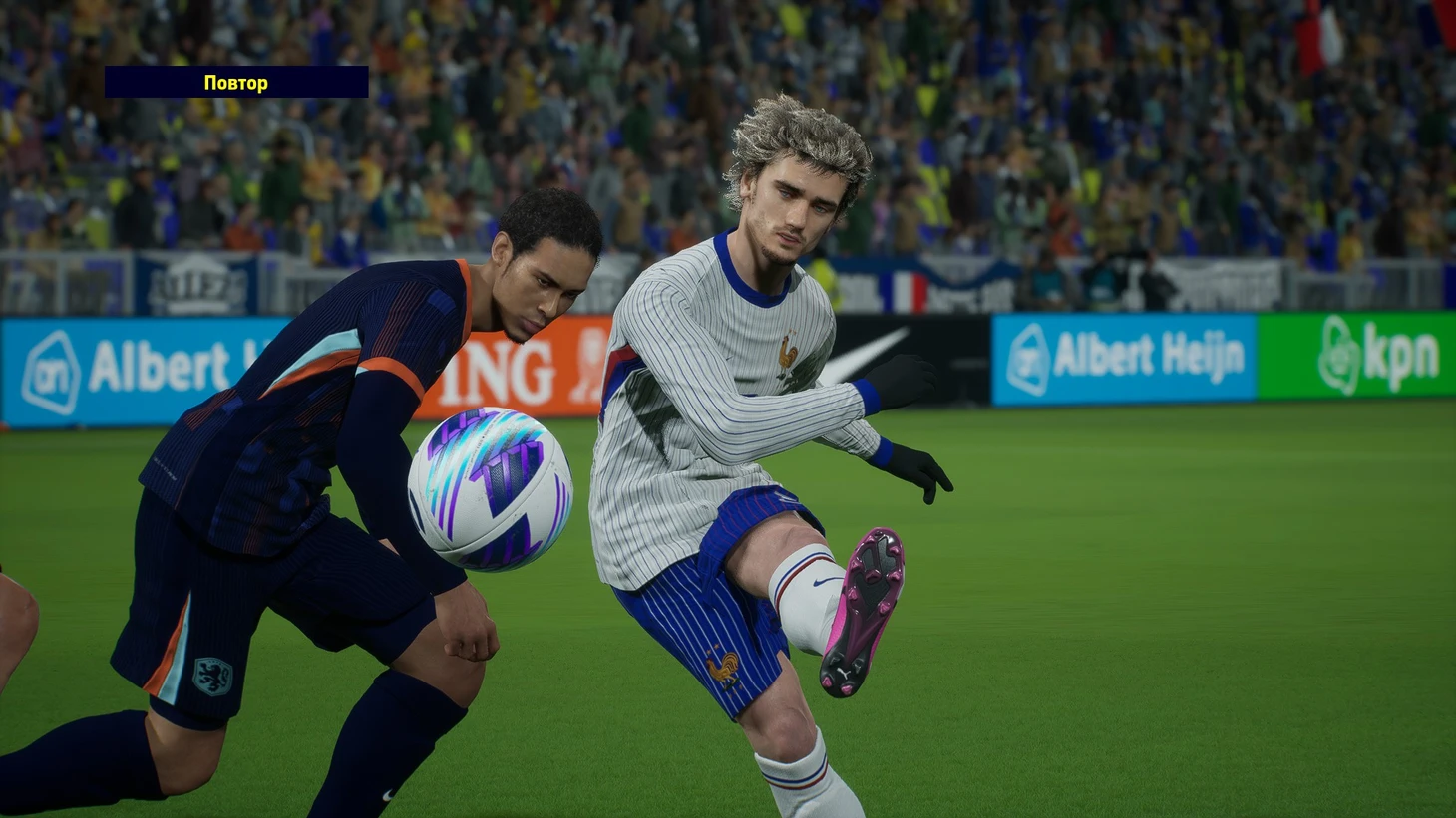 Вроде ужас, а вроде не сильно хуже режима Евро-2024 в FC 24. EA Sports тоже отказалась от онлайн-матчей, а отсутствие правдоподобных составов компенсируется вашей фантазией (я, например, взял в сборную Франции легенду Эммануэля Пети). Без лицензий немного не то, хотя все топ-сборные получили настоящие формы, а перед стартовым свистком звучат гимны. Некоторые игры Евро можно повторить в «Пробных матчах» на лицензионной «Арене Мюнхен».