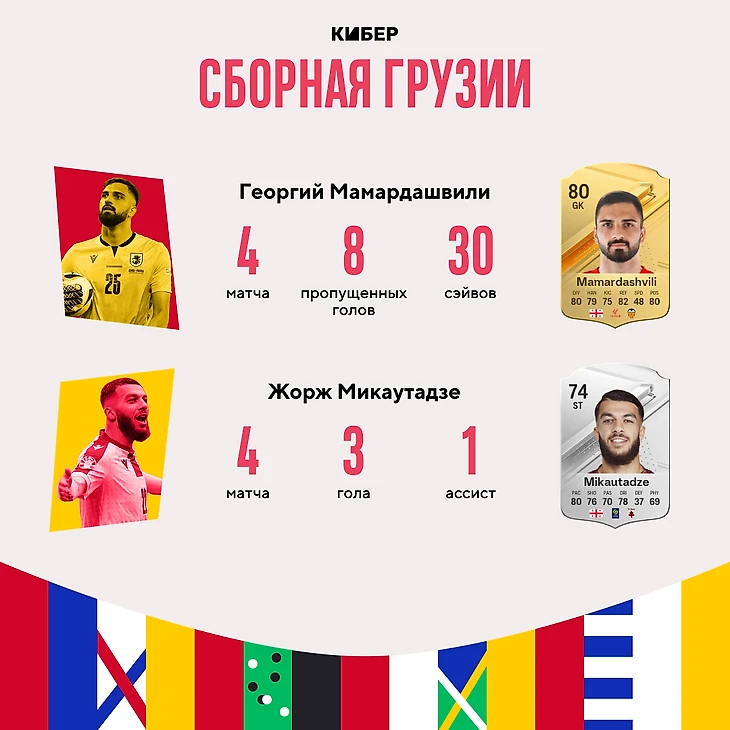 Неплохой турнир провел Хвича Кварацхелия, но больше запомнились его партнеры Георгий Мамардашвили и Жорж Микаутадзе. Вратарь «Валенсии» сделал 30 сэйвов и попал в символические сборные от Opta и ESPN, а Жорж Микаутадзе забил по голу каждому сопернику в группе и попал в шестерку «Золотой бутсы».