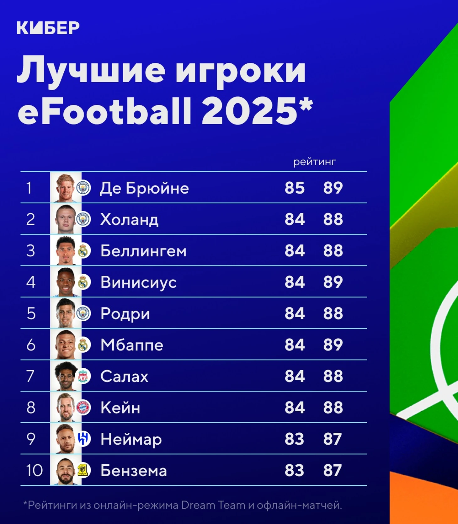 Раскрыли рейтинги игроков eFootball 2025. Де Брюйне лучший, в топе «Реал» и «Сити»