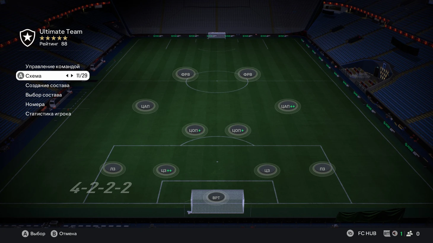 Расстановка 4-4-1-1 популярна среди киберспортсменов. Схема совместила идеи 4-4-2 и 4-3-3 (4): из первой взяла баланс и широкое расположение игроков, а из второй – центральную роль атакующего плеймейкера. Фланговые нападающие в этой схеме обычно исполняют роли вингеров, а центральные хавбеки играют на удержание.