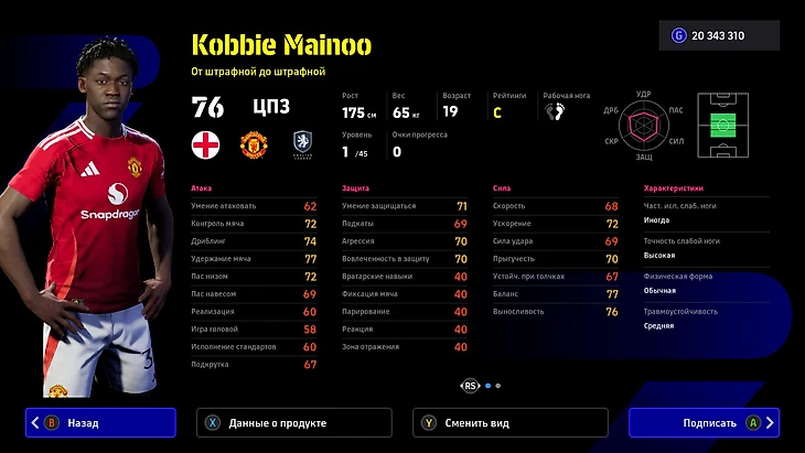 Молодой талант «МЮ» подойдет для центральных позиций. У Кобби Майну универсальные характеристики бокс-ту-бокса: скорость, физика и неплохое владение мячом. Увы, англичанин плохо бьет по воротам и не подойдет для атакующей роли.