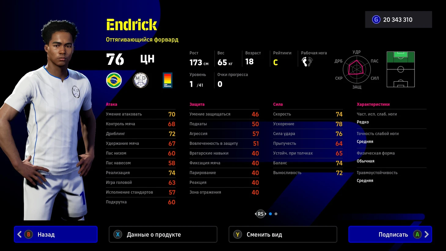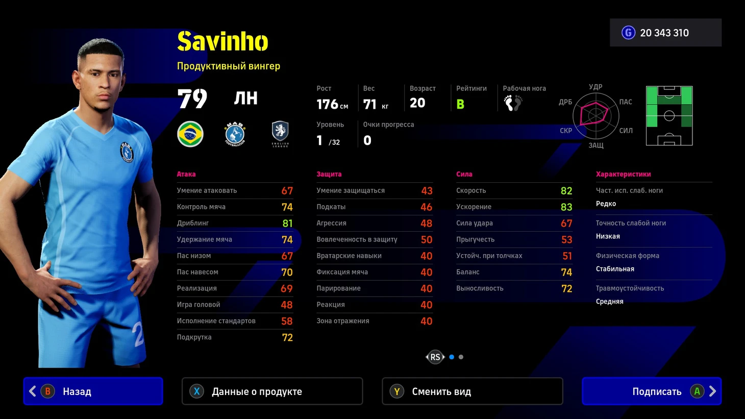 Бразильский новичок «Сити» получил отличные универсальные характеристики в eFootball. Он быстрый, хорош финтит, сносно пасует и завершает с двух флангов. Приятный навык Савио – точные подачи.