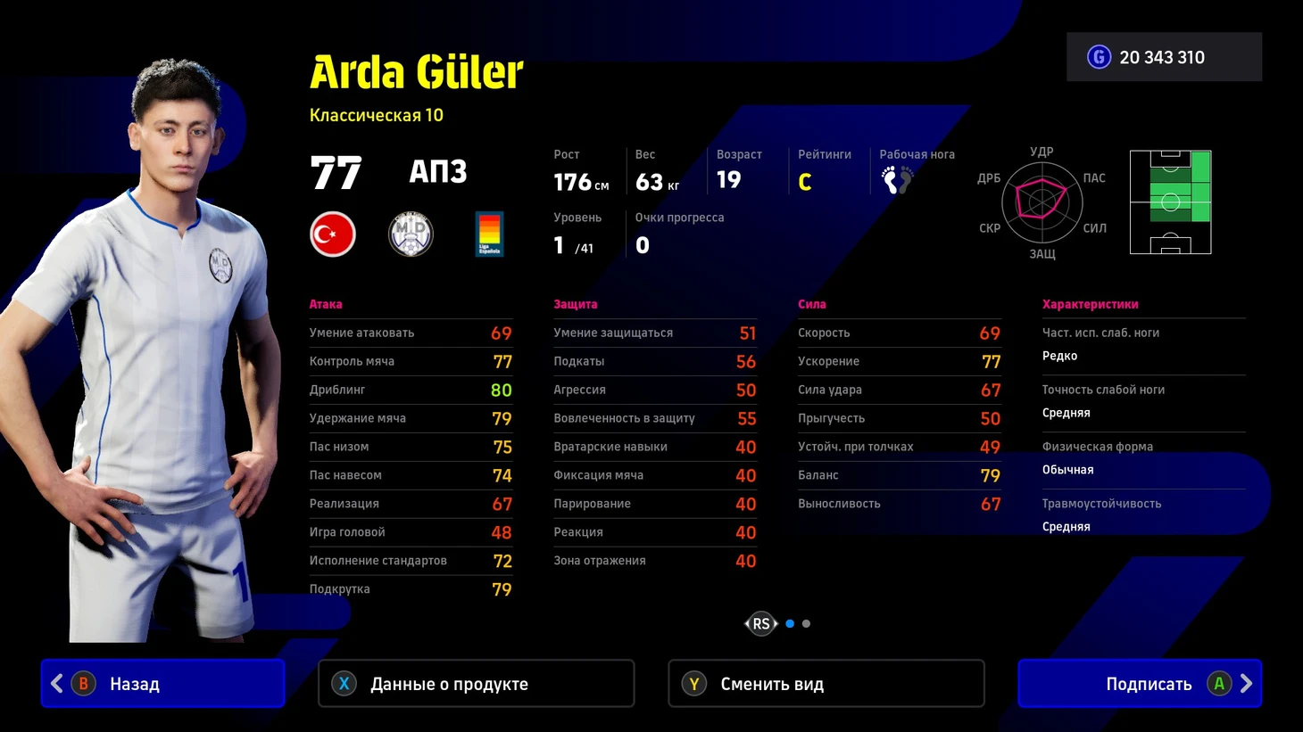Арда Гюлер – шикарный атакующий хавбек. У турка очень хорошо прокачиваются дриблинг и передачи, а дополнительные навыки плеймейкера помогают без труда развивать атаки. Гюлер резвый, но не слишком выносливый.