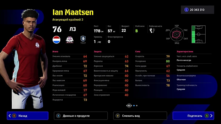 Иан Матсен – идеальный крайний защитник по соотношению цены и качества. Нидерландец очень быстрый (даже слишком), но лучше потратить остаток очков прогресса на защиту, передачи и дриблинг. Силовые дуэли Матсену противопоказаны.