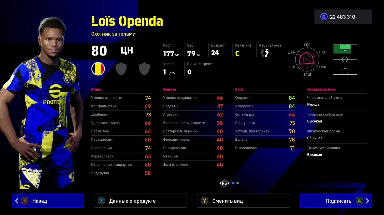 Лои Опенда – премиальный суперсаб. У бельгийца фантастическая скорость, хорошая реализация и важный навык «Удар без подработки», он будет тащить даже спустя несколько месяцев в игре. В футсиме по-прежнему нет чемпионата Германии, поэтому игрок доступен свободным агентом.