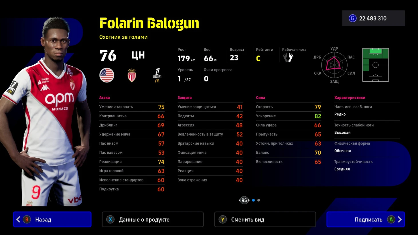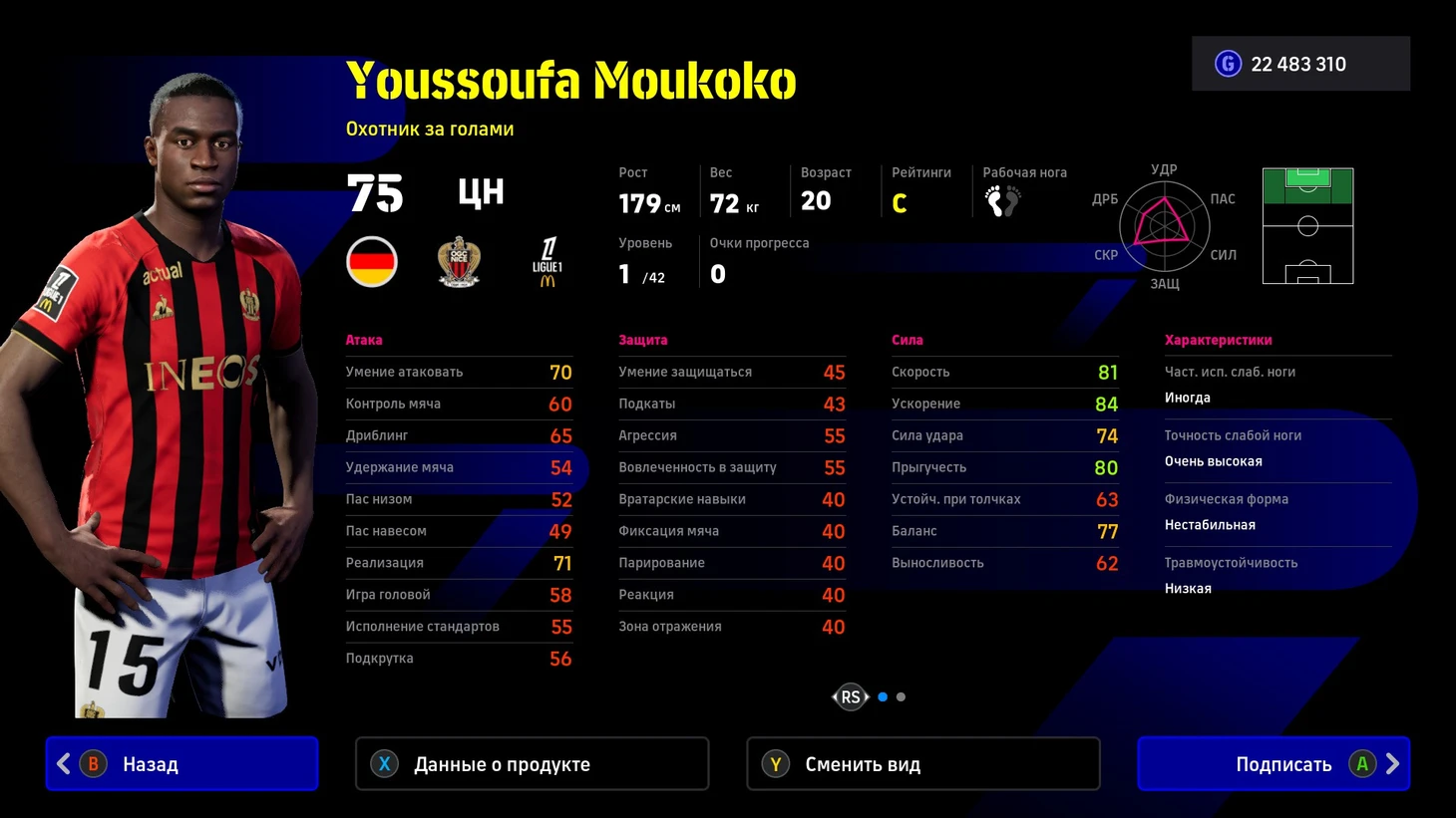 Мы не знаем, сколько Мукоко лет, но в eFootball он легальный читер. Немецкий талант получил 42 уровня и спокойно прокачивается до неприличных показателей скорости и завершения. У Мукоко отличный набор талантов на удары, но пасовать за него не стоит.