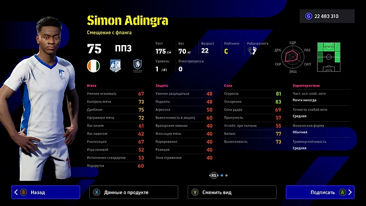 Универсальный вингер из Кот-д’Ивуара. Симон Аденгра очень быстрый и техничный, а еще отлично смещается с фланга и бьет кручеными ударами издали. При необходимости может выйти в центре атаки.