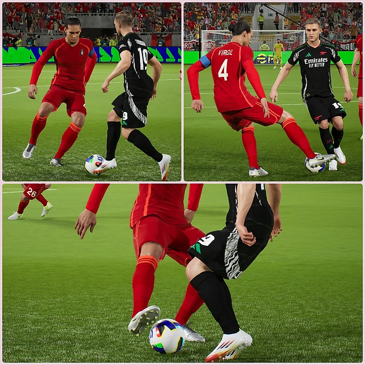 Классические отборы (x2 A/X) встречаются реже и нужны для акцентированных приемов в ситуациях, когда защитник находится к сопернику лицом к лицу. Подкаты (B/круг) в симуляторе практически не используются из-за высокого риска удаления даже в безобидных ситуациях. Опыт из реального футбола здесь не поможет.