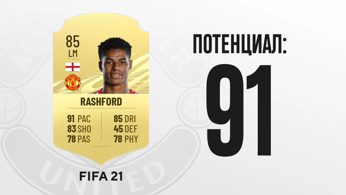 Поначалу большие деньги не повлияли на молодого форварда. Маркус выдал шикарный год в АПЛ (17+8) и добыл с командой место в Лиге чемпионов, а на следующий сезон набрал почти 40 очков по «гол+пас» и забил 6 голов в ЛЧ. EA выдала Рэшфорду крутую карточку с рейтингом 85 и подняла потенциал в небеса – 91. Но англичанин неожиданно затормозил.