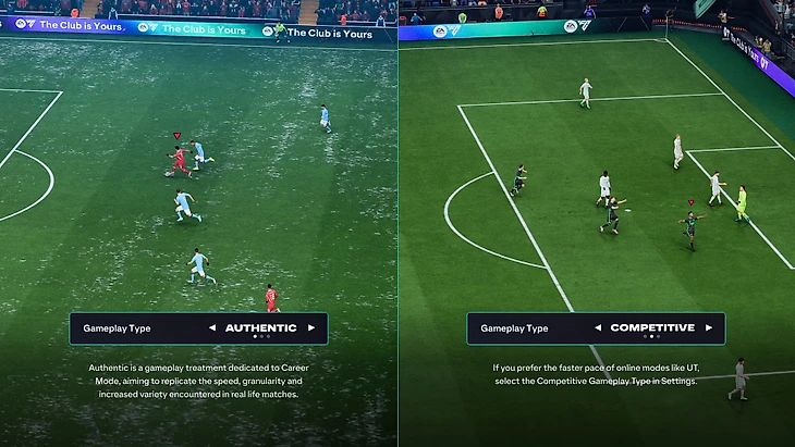 EA добавила в FC 26 два типа игрового процесса – соревновательный и аутентичный. Теперь геймплей в онлайн-режимах ориентируется на атакующий стиль и динамичность. Игроки смогут легче финтитить, снизится число случайных отскоков и автоблоков, а вратари станут надежнее. Соревновательный геймплей появится в Ultimate Team, Клубах, сезонах и товарищеских матчах по сети.