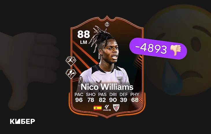 В антирейтинг попали сразу два игрока «Атлетика». Нико Уильямс получил превосходную карточку Лиги Европы с двумя игровыми стилями и будущими апгрейдами, но разработчики перестарались с ценой. Многие фиферы не накопили 500 тысяч монет за неделю после релиза даже в поломанной экономике FUT.