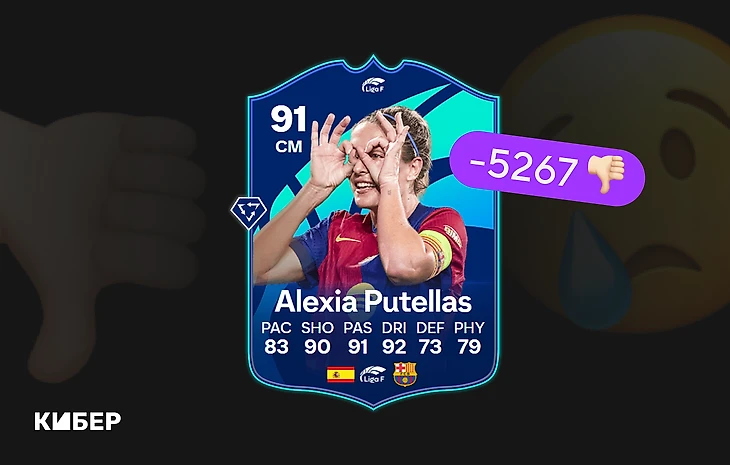 Двукратная обладательница «Золотого мяча» – вторая футболистка FC 25. Однако высокий рейтинг стал проблемой. В ноябре Алексия Путельяс получила дорогое ИПК на 1,5 млн монет, где характеристики отличались от базовой версии всего на единицу. Игроки посчитали сборку слишком дорогой и скучной.