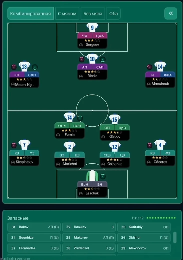 Мэд не скачивал тактики – поставил базовые. На матч 1-го тура против ЦСКА выбрал схему 4-2-3-1. В ворота поставил Лещука, справа в атаку Маухуба, а в нападение – Ивана Сергеева.