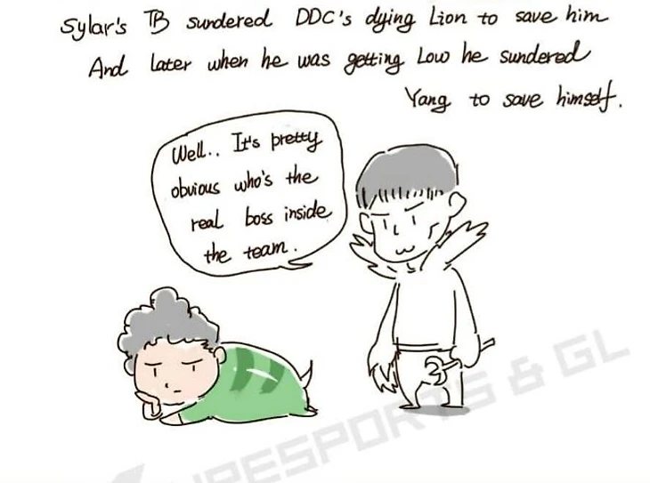 В матче с Flytomoon Сайлар на TB сначала спас DDC, применив на него Sunder, а позже забрал здоровье у Янга, чтобы спастись самому.