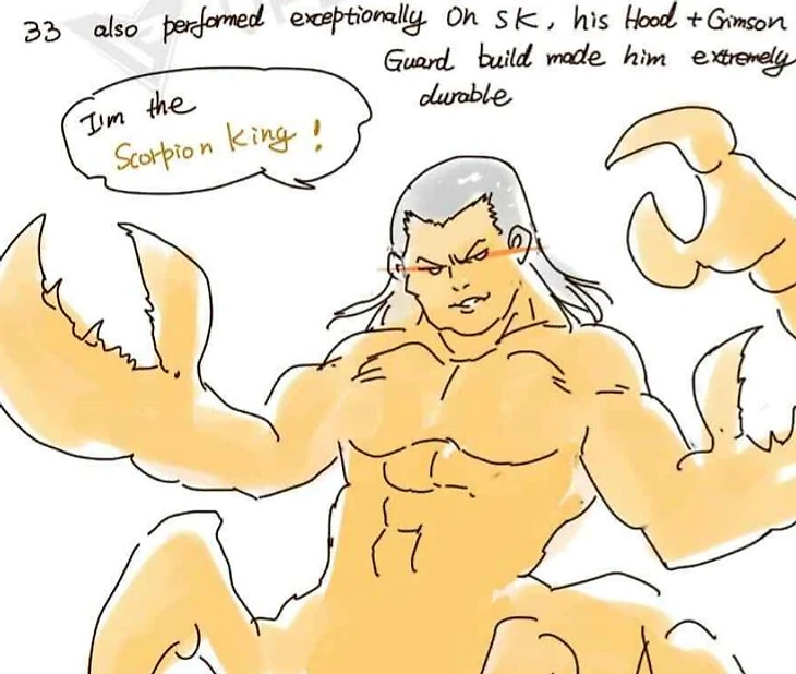 Еще 33 прекрасно отыграл на SK. Билд через Hood и Crimson Guard сделал его практически неубиваемым.