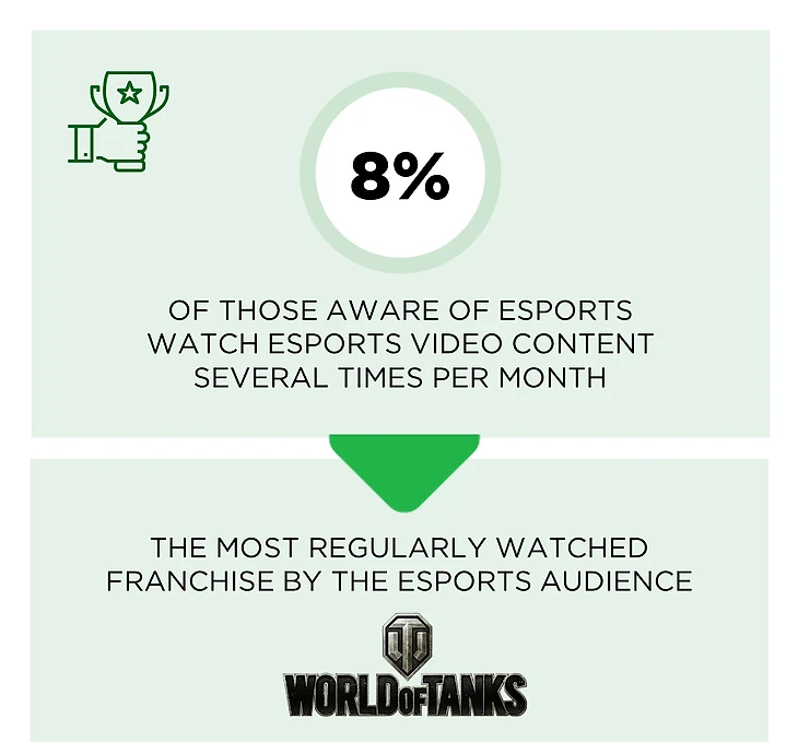 Среди всех пользователей лишь 8% хотя бы несколько раз в месяц зависают на киберспортивных трансляциях. Самой просматриваемой онлайн-игрой, при этом, стала World of Tanks.