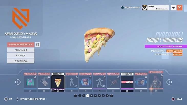 Этот пример отлично описывает прогрессию. Разработчики приличных free-to-play за донат немного облегчают жизнь, но Blizzard вырыла пропасть между обычными игроками и донатерами. Пока одни геймеры выбивают крутые скины и новых героев, другие получают пиццу с ананасом. Это не шутка, именно ее дают на 23-м уровне бесплатного пропуска.