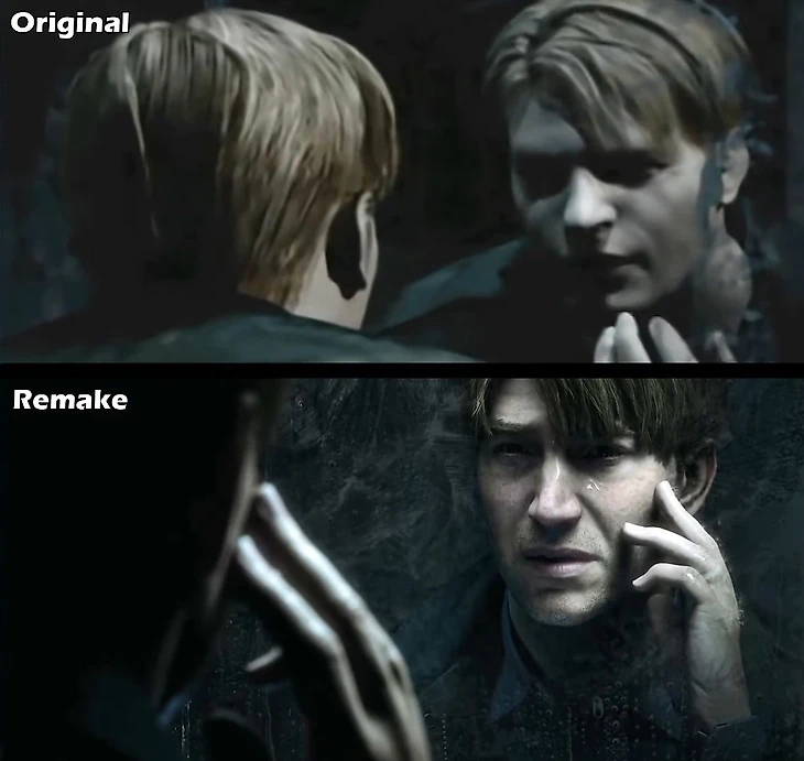Bloober Team обещают перенести все достоинства оригинала в ремейк, но они уже допустили ошибку. В оригинале лицо заглядывающего в зеркало Джеймса затемнили. Когда фанаты добавили яркость, то заметили, что герой ломает четвертую стену и глядит прямо на игрока. А в трейлере ремейка эту деталь упустили.