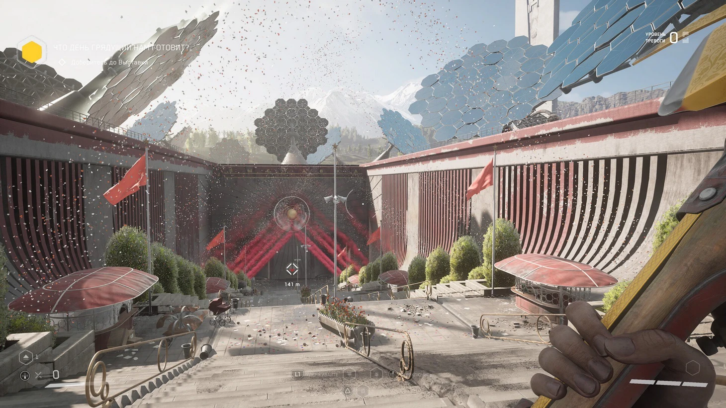 Попали в город? Повсюду толпятся советские граждане, роботы развлекают танцами, по проспекту шествует парад, здания шокируют величественностью.