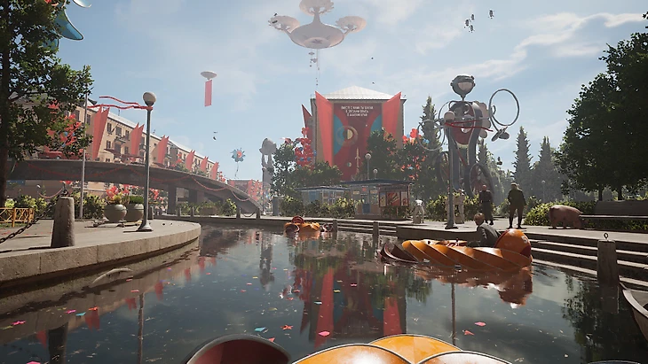 В Atomic Heart нет открытого мира. Только просторные локации с роботами, лутом и редкими полигонами. Поэтому разработчики не распылялись и нарисовали шикарный дизайн.