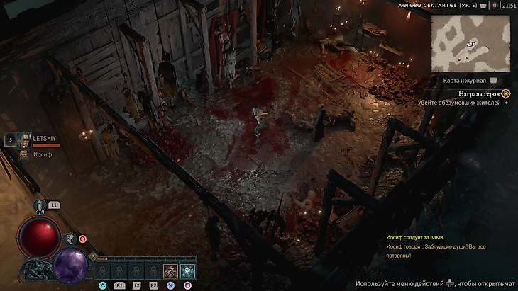 Чем дольше зависаешь в Diablo 4, тем тревожнее становится. Заглянули в подвал? Там из ребенка в муках изгоняют демона. Спустились в подземелье? Из стен растут неприятные щупальца, а проходы перекрывает жуткое мясо. Пришли в храм? Повсюду символы сектантов, кровь и трупы.