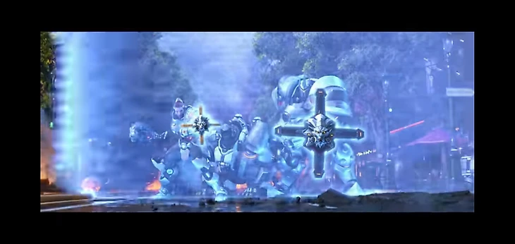 Особенностью кампании была отдельная ветка прокачки примерно с 50 перками. Прокачанная Мэй замораживала всех врагов в помещении, а Гэндзи швырял меч и рубил им десятки мобов. Способности еще и сочетались: Райнхардт сильно колотил по земле и ломал заледеневших роботов или объединял щиты с Бригиттой, создавая непробиваемую оборону.