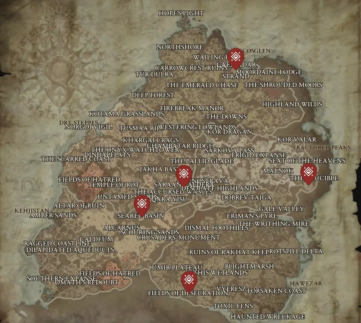 Есть 5 мест, где появляются мировые боссы. Все они помечены на скриншоте.
