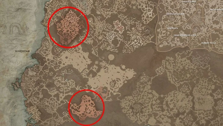 В Diablo 4 два Поля ненависти: первый находится в регионе Сухие степи, второй – в Кеджистане. Обе локации помечены на карте красным цветом.
