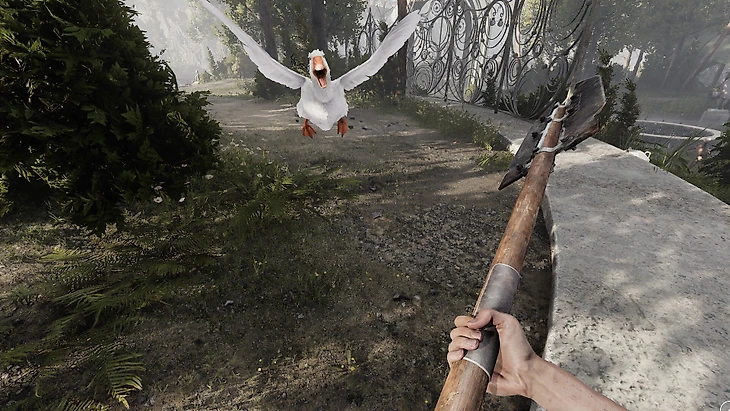 Если подойдете, гусь взбесится и нападет. Наказать животное за дерзость нельзя: после пары попаданий оно прячется в нору и ползет к следующей локации.