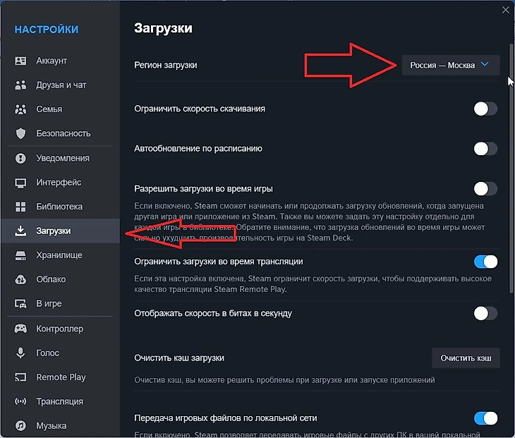Перейдите в раздел «Загрузки» и найдите там «Регион загрузки».