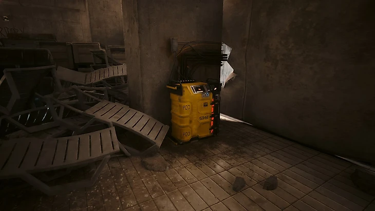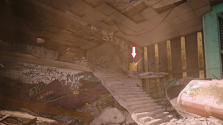 Спуститесь на лифте в подземное помещение и найдите терминал рядом с мусором.