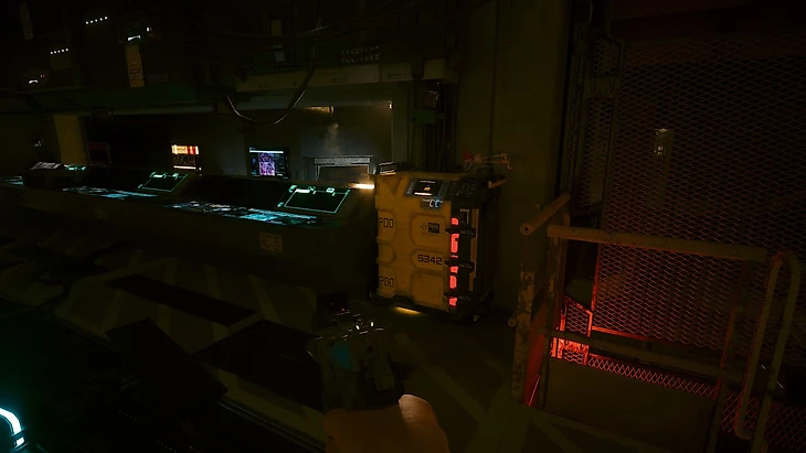 Ищите нужный ящик за колонной в левой части помещения. Учтите, что за очки прокачки придется сразиться с крутым нетраннером.