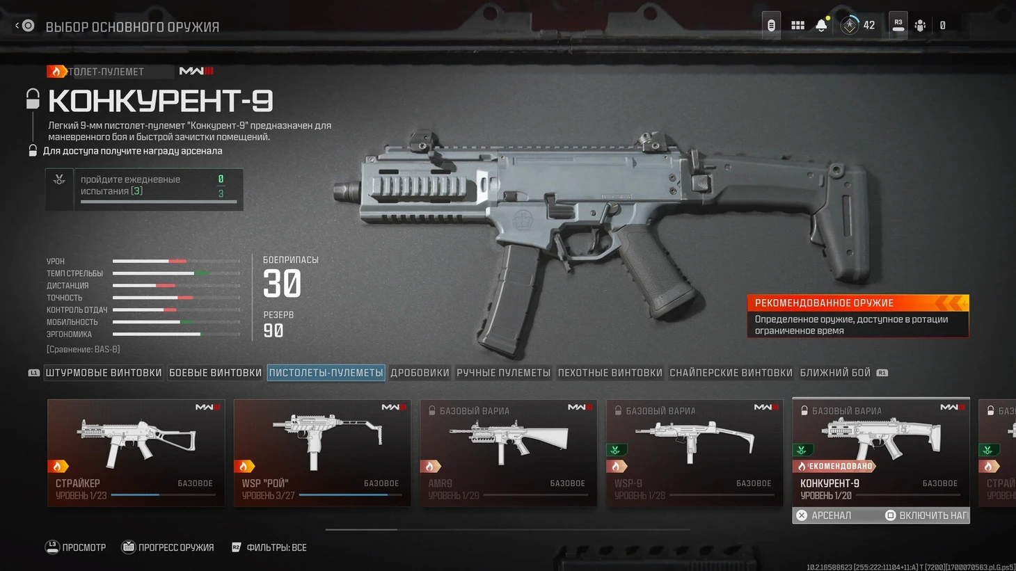 Превосходит Конкурента-9 по скорострельности, но сильно уступает в плане урона и контроля отдачи.