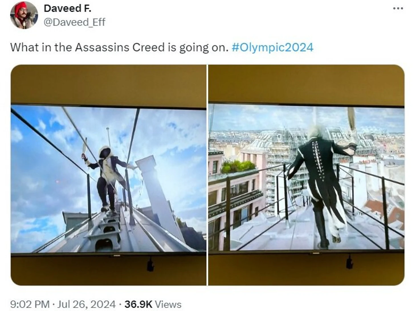 В выступлении фрираннера все сразу распознали отсылку на популярную серию игр Assassin’s Creed от французской компании Ubisoft.