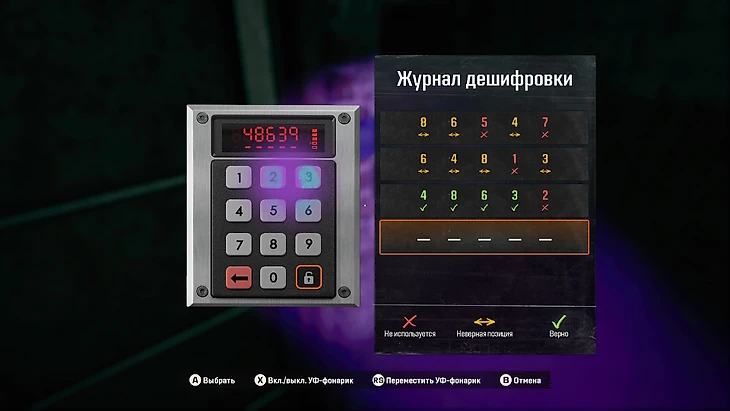 Вход в бункер рядом с пианино открылся. Исследуйте бункер и найдете кодовый замок. Светите на него инфракрасным фонарем и увидите кнопки, на которые часто нажимали.