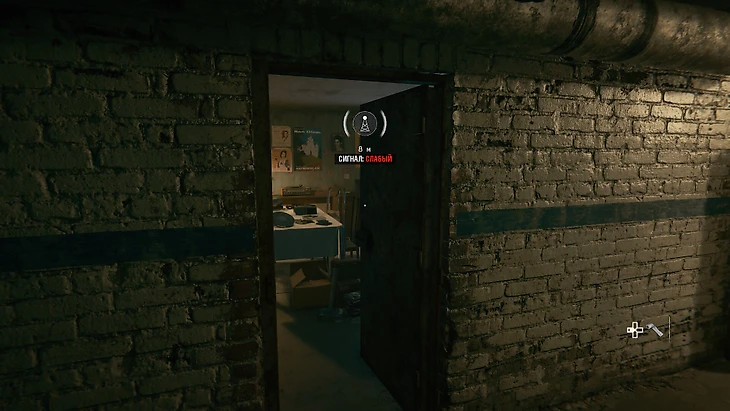 В другом крыле бункера откроется проход. Вам в допросную комнату, но она заперта. Взломайте ее отмычкой: крутите девайс, пока отсек на замке не засветится белым. Подержите отмычку в таком состоянии, и отсек откроется. Повторите трюк трижды – и попадете в допросную комнату. Внутри лежит ключ.