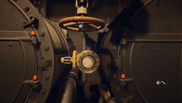 Дважды крутите вентиль «Котел».