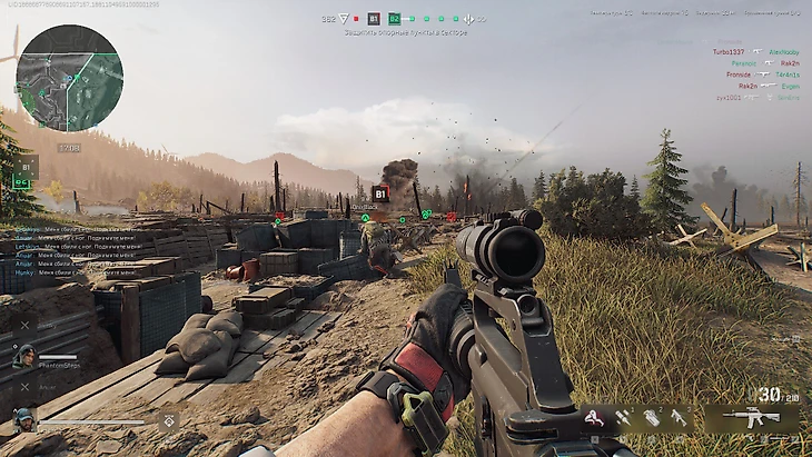 Еще печальнее задымленность локаций. Популярные штурмовик и медик носят дымовые гранаты и метают их в любой непонятной ситуации. В итоге контрольные точки – как ваши, так и чужие – вечно в тумане, который долго рассеивается. Забегаешь на них и не понимаешь, что делать, куда стрелять. Надежда только на разведчика, что подсветит врагов.