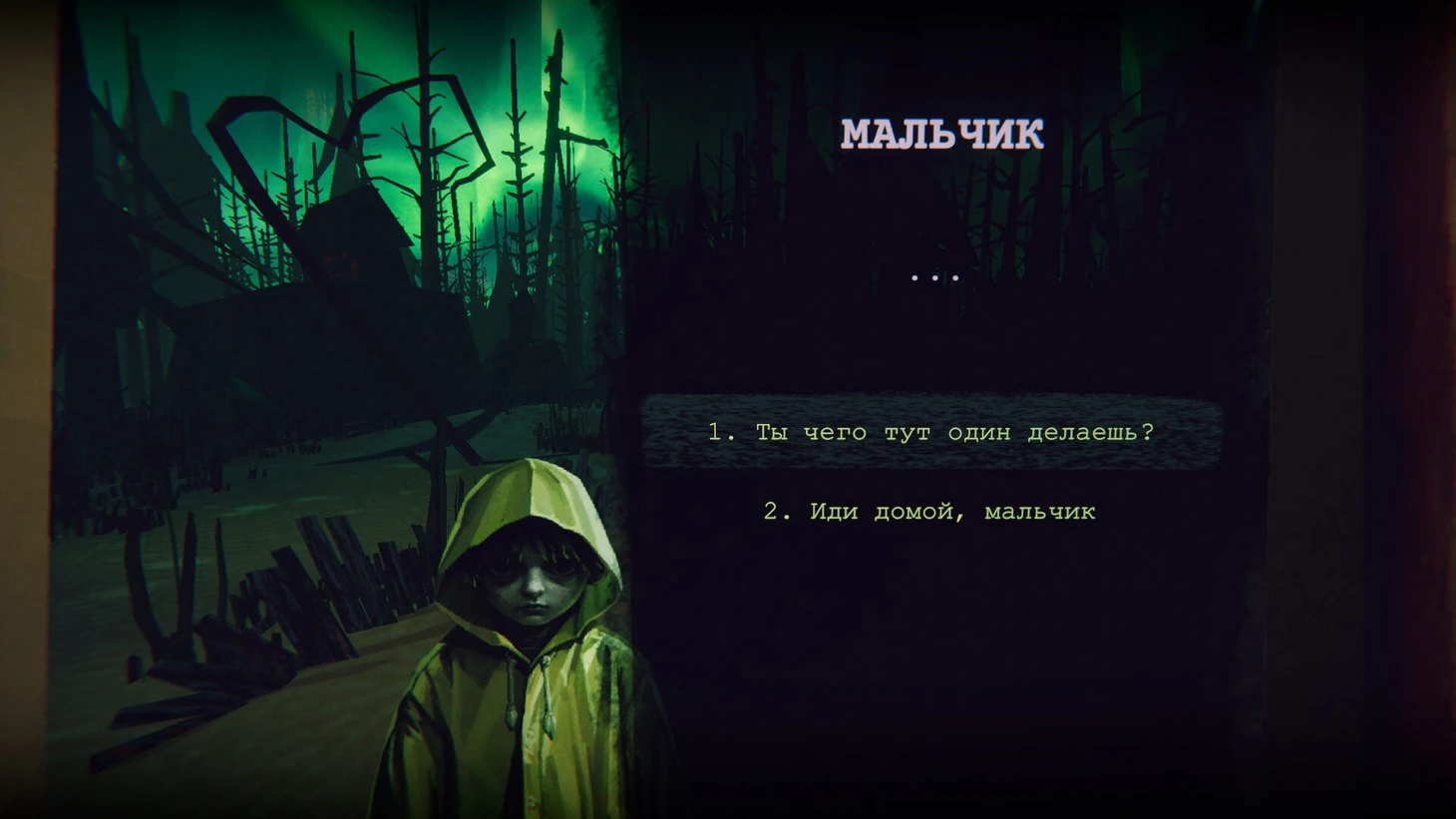 В плане геймплея это визуальная новелла. Нарисовано круто: приятный пиксельный стиль, анимированные персонажи и море ностальгии. В троллейбусах стоят компостеры для пробивания билетов, у подъездов сидят бабули-сплетницы, дети травят байки о черном человеке, что подсаживается в лифт и увозит в ад. Такие подмигивания из детства повсюду.