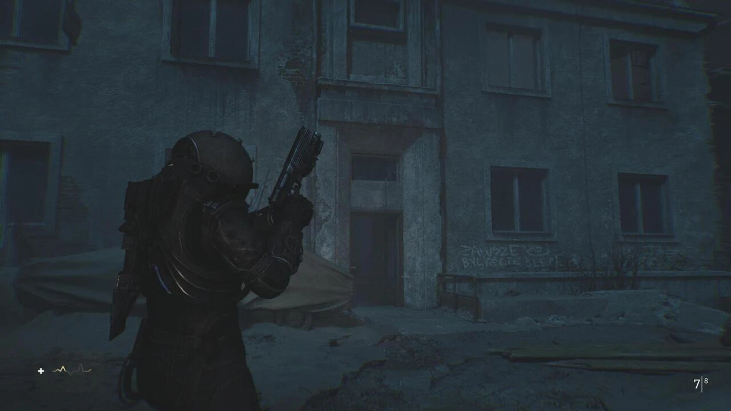 Когда выйдите в город после встречи с Борувкой, слева найдете запертую на цепь дверь. Чтобы открыть ее, продвигайтесь по сюжету: доберитесь до дома с аномалиями, отыщите там ключ и откройте им мастерскую во дворе. Там лежит болторез.