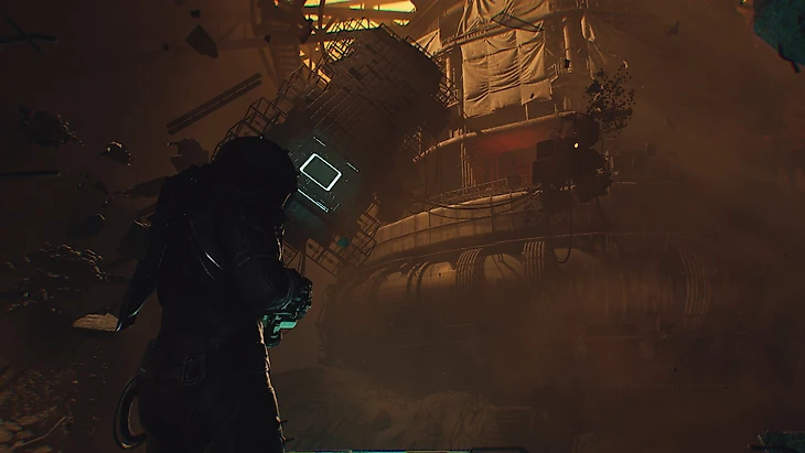 По пути в больницу нужно прыгать по гравитационным колодцам. Они приведут в высокое разрушенное здание. Вскоре маркеры направят к платформе внизу. Не спешите туда прыгать: лучше осмотритесь и отыщите гравитационный колодец, заколоченный досками.