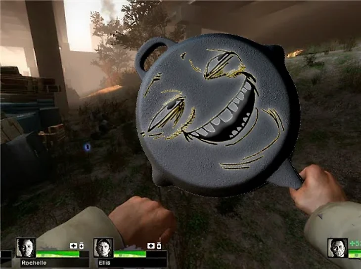 Поэтому сковорода в L4D2 это не только отсылка к «Добро пожаловать в Zомбилэнд», но и хорошее орудие ближнего боя. Звуки удара сковороды даже наделили субтитрами. Другие оружия такого эффекта не получили.