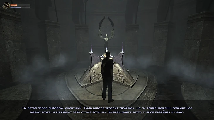 История, кстати, нелинейная. Когда мы соберём сердце ангела, нам дадут выбор – усилить свой меч (который, кстати, дико напоминает мне об Антоне Городецком из «Дозоров») или усилить демона… то есть слугу, как называет его ангел. От этого выбора будет зависеть финал. Который спойлерить я вам не буду – может найдутся желающие попробовать. Поэтому перейдём к геймплею.