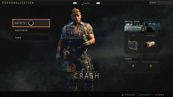 Самый командный персонаж из всех. Крэш выполняет роль полевого медика и бойца поддержки. На первой способности у него сумка с боеприпасами, которой могут воспользоваться союзники. За это Крэш получает очки. Патроны из сумки можно подобрать, даже находясь от нее на расстоянии нескольких метров. Нужно нажать кнопку F, и ваш персонаж, словно джедай, притянет патроны к себе.