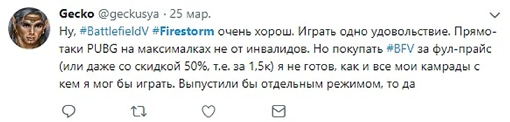 Игроки ждали королевскую битву в Battlefield 5 чуть ли не с первого дня релиза. Изначально у DICE возникли трудности в рабочем графике — надо было доделывать игру, — поэтому за разработку Firestorm отвечала Criterion Games (студия уже помогала DICE с мультиплеерными режимами в Battlefront 2). Несмотря на все трудности и затяжку времени, у разработчиков из Criterion получился весьма добротный батлрояль, который хорошо лег на базовую механику Battlefield.