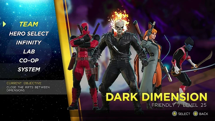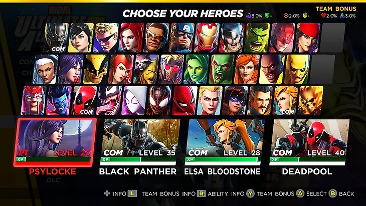Самих персонажей несколько десятков, и здесь есть как любимые всеми Человек-паук и Росомаха, так и те, за кого раньше играть не доводилось, вроде Майлза Моралеса или Капитана Марвела. Изначально доступны только Стражи галактики, но по мере прохождения миссий к ростеру присоединяются все остальные.